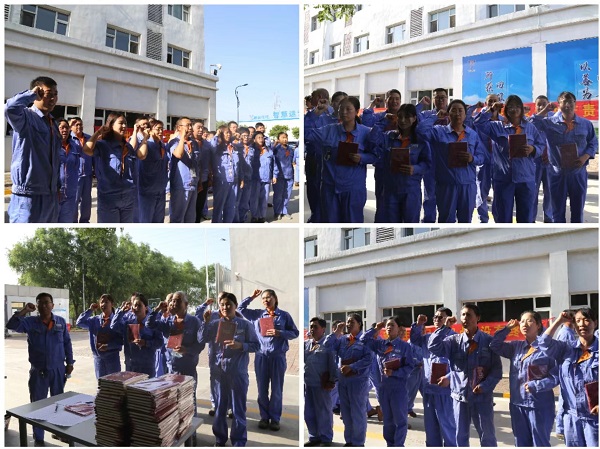 儀式現(xiàn)場發(fā)放了“人人講安全 個個會應急”紀念筆記本,要求大家在日常工作中遵守安全承諾,學習安全知識,提升安全技能,在崗一分鐘、安全六十秒,隨后各車間部門紛紛進行宣誓承諾。